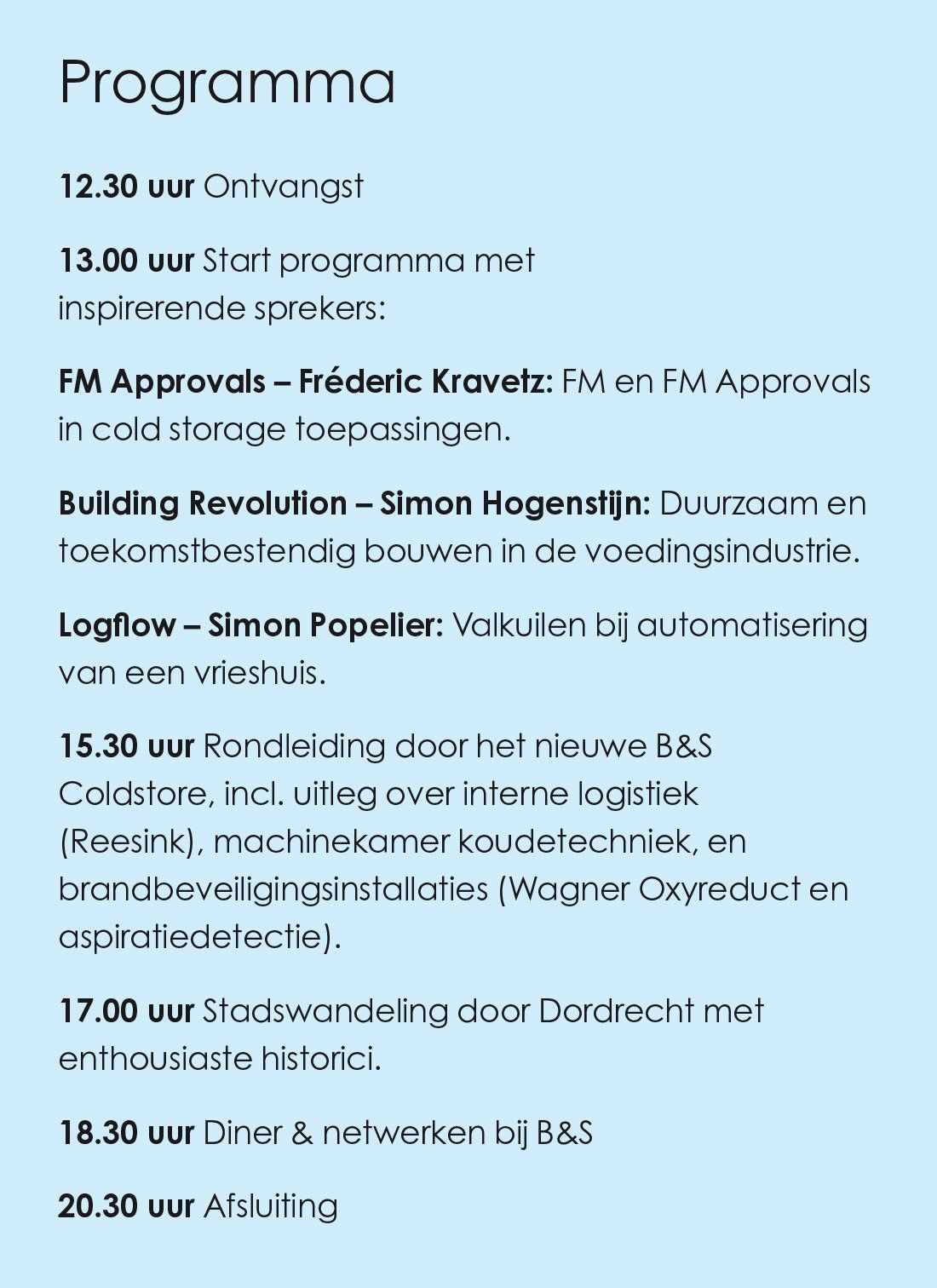 Op 4 december 2025 organiseert Nekovri partners Movu en Wagner en geassocieerde leden Isocab by Kingspan en Lalesse de derde editie van de Benelux Coldstore Kennis & Netwerkdag. Dit keer nodigen zij u als gast uit bij het splinternieuwe vrieshuis van B&S Coldstores in Dordrecht. Een dag vol kennis, praktijkvoorbeelden en inspirerende ontmoetingen met collega’s uit de branche. U kunt zelf kiezen voor: Het hele programma Alleen de sprekers Sprekers + rondleiding U kunt zich aanmelden via de volgende link: nl.isocab.com/netwerkdag . Bij aanmelding kunt u eenvoudig ook één of meerdere collega’s registreren.