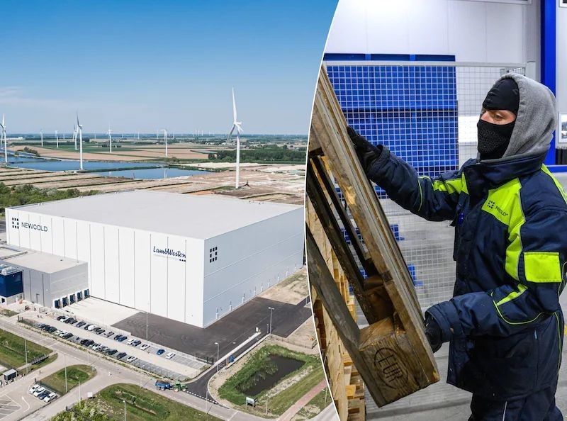 Het 43 meter hoge, witte gebouw van NewCold in Dinteloord heeft wel wat weg van een enorm ijsblokje. Het straalt daarmee precies uit wat het van binnen is. Wat gebeurt er eigenlijk allemaal in dat ultramoderne vrieshuis? Pallets met dozen bevroren friet, brood, ijs en vlees sjeezen van links naar rechts; betreden mag alleen met beschermende, warme kleding. Elkaar verstaan is lastig: de lawaaiige luchtkoelers houden de temperatuur tussen de -21 en -25 graden celsius. Welkom in het ijskoude magazijn van NewCold, het vlaggenschip van het internationale vrieshuisbedrijf. Hierbinnen is het proces volledig geautomatiseerd. Waar concurrenten volgens directeur Bram Hage doorgaans een man of 300 hebben rondlopen, zijn dat er in dit nieuwe pand slechts een stuk of 50. Een van hen is heftruckwerker Tivadar Szakacs (42), die al zes maanden in de vriesopslag werkt. Of dat niet verschrikkelijk koud is? De van oorsprong Roemeense man schudt van niet. „De cabine van de heftruck is verwarmd, soms heb ik het zelfs een beetje te warm.” Buiten de verwarmde cabine kan het wel koud aanvoelen, vooral bij het verplaatsen van pallets met de hand. „Als je zoiets vastpakt, kruipt de kou naar binnen, vooral in je vingers. Je lichaam blijft wel echt warm door de kleding.” Stroom van de buurman Werknemers moeten verplicht thermokleding, handschoenen, een muts, helm en veiligheidshandschoenen aan. Wie in het magazijn rondloopt, mag er maximaal 45 minuten werken. Daarna moet personeel 10 minuten in een verwarmde ruimte zijn. In de ruimte waar volautomatische kranen de pallets in de vrachtwagentrailers zetten, is het zuurstofniveau slechte 16,5 procent. „Voor de brandveiligheid: hier kan geen brand ontstaan”, vertelt hoofdingenieur Jan Adriaan Deysel met klapperende kaken. Dit nieuwe vrieshuis van NewCold is wereldwijd de eerste die 100 procent zelfstandig functioneert én niet aangesloten is op het elektriciteitsnetwerk. En daar is directeur Bram Hage heel trots op. „Hierdoor slagen we erin om hier 134.000 pallets op te slaan op slechts 32.000 vierkante meter met behulp van negen palletkranen. Traditionele magazijnen hebben hier doorgaans drie keer zoveel ruimte voor nodig.” Stroom krijgen ze van hun buren: groenteveredelingsbedrijf Rijk Zwaan. Hun warmte-krachtkoppelingsinstallatie levert alle energie die NewCold nodig heeft. „60 procent van de dozen bevat bevroren aardappelen”, zegt Hage. Gemiddeld blijven producten drie of vier weken opgeslagen, legt hij uit. „Maar soms komt er een levering ‘warm’ binnen die de volgende dag weer weg moet. Dan shockfreezen we het en brengen de temperatuur binnen korte tijd tot -18.” De grootste klant van het Dinteloordse magazijn is Lamb Weston, de grootste leverancier van diepvriesfriet aan McDonald’s. Die heeft fabrieken in Kruiningen en Bergen op Zoom: de (krul)friet hoeft dus niet ver te reizen. Wouter Smit van Lamb Weston is blij dat hij hier de ruimte heeft om zijn product op te slaan. „Als je geen opslag hebt, moet je fabrieken stilzetten. Op dat punt zaten we, tot NewCold zo dichtbij zijn eerste opslag opende. We hadden dit écht nodig.”